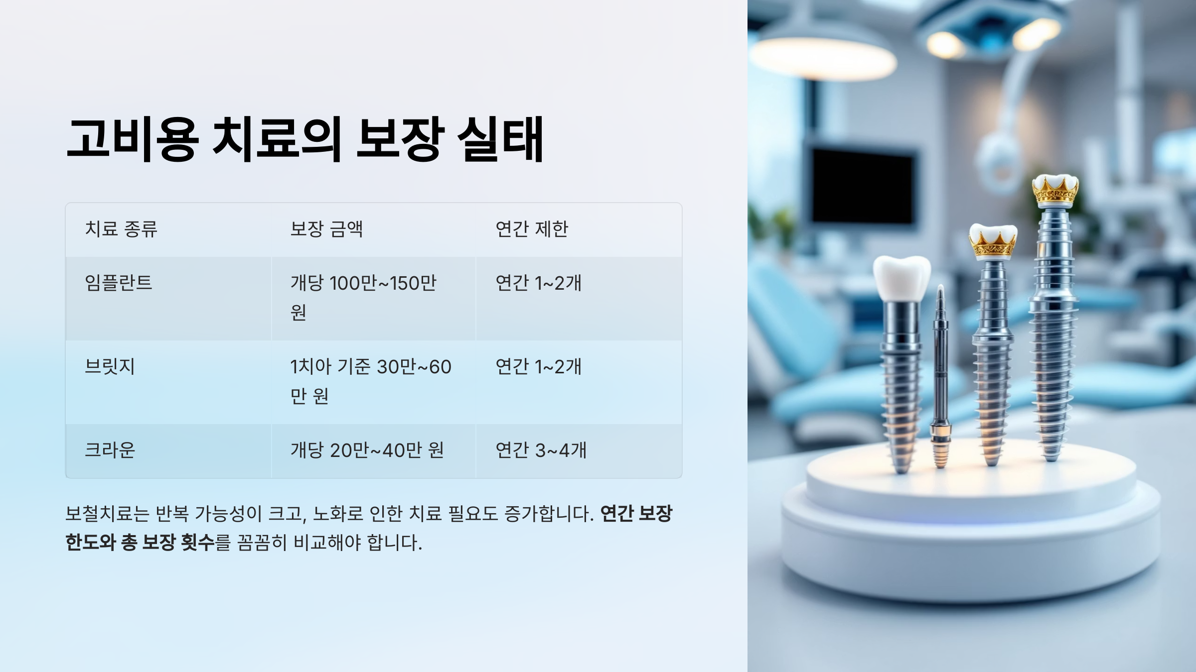 3. 고비용 치료: 임플란트, 브릿지, 크라운의 보장 실태