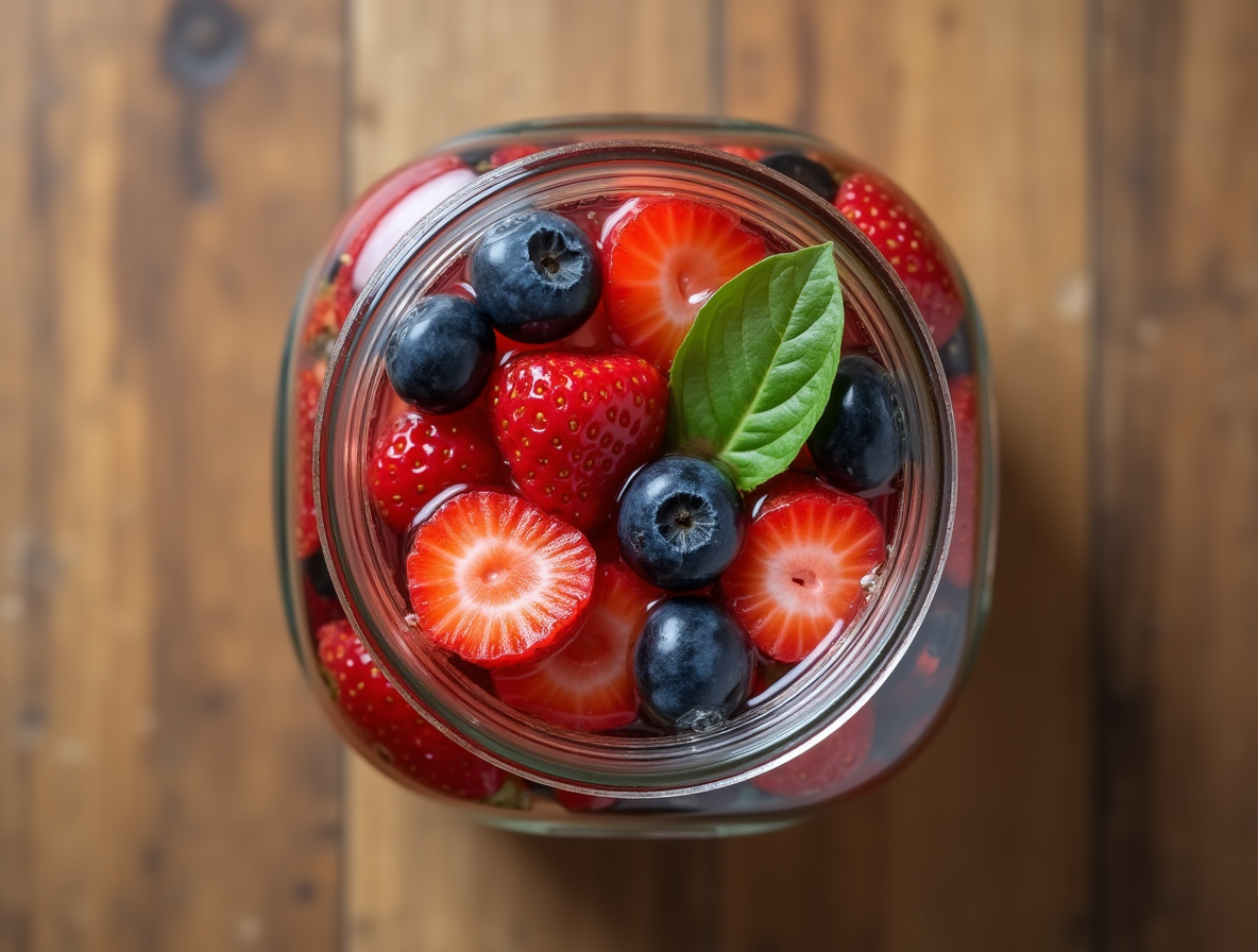 - 방법: 딸기 3~4개 슬라이스, 블루베리 한 줌, 바질 잎 몇 장을 넣고 우려주세요.