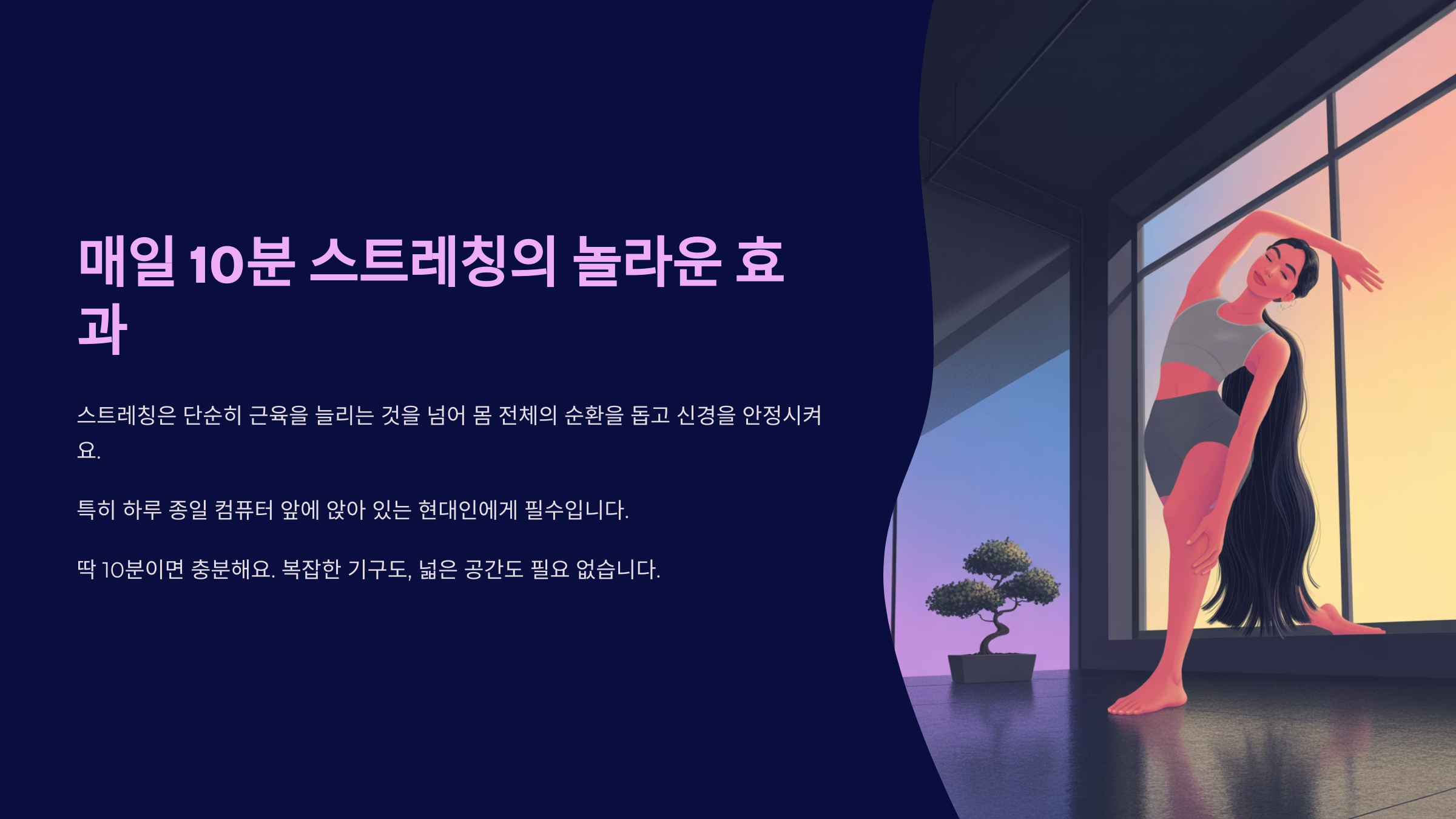 짧은 시간 스트레칭이 정말 효과가 있을까 싶지만, 꾸준히 실천해 보면 몸의 반응이 달라지는 걸 느끼게 됩니다.