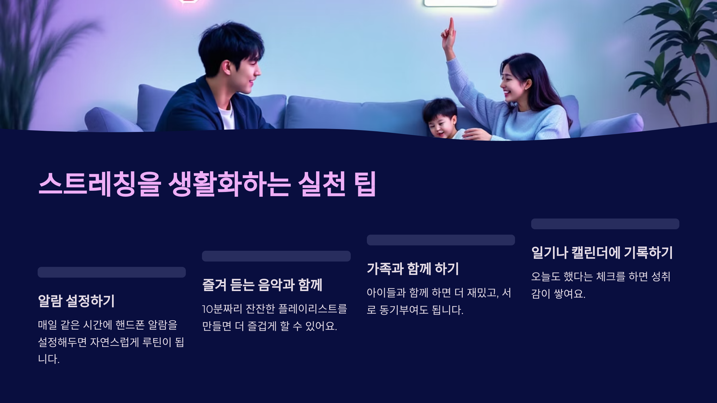 스트레칭을 습관으로 만들기 위한 실용 팁 몇 가지를 소개할게요.