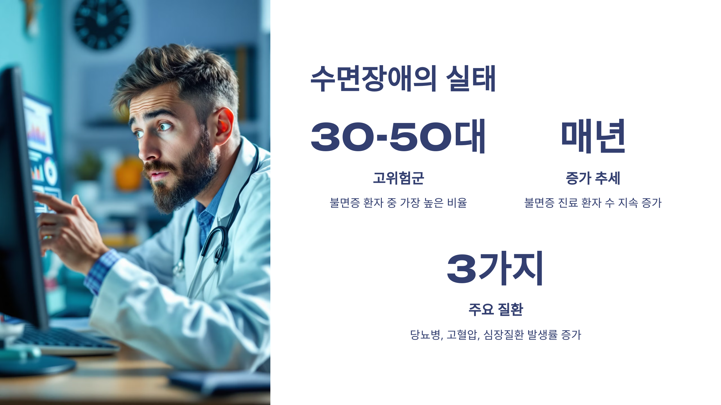 현대인은 다양한 이유로 수면에 어려움을 겪고 있습니다. 실제로 국민건강보험공단에 따르면 불면증으로 진료받은 환자 수는 매년 증가하고 있으며, 특히 30~50대 중년층에서 그 비율이 높습니다.