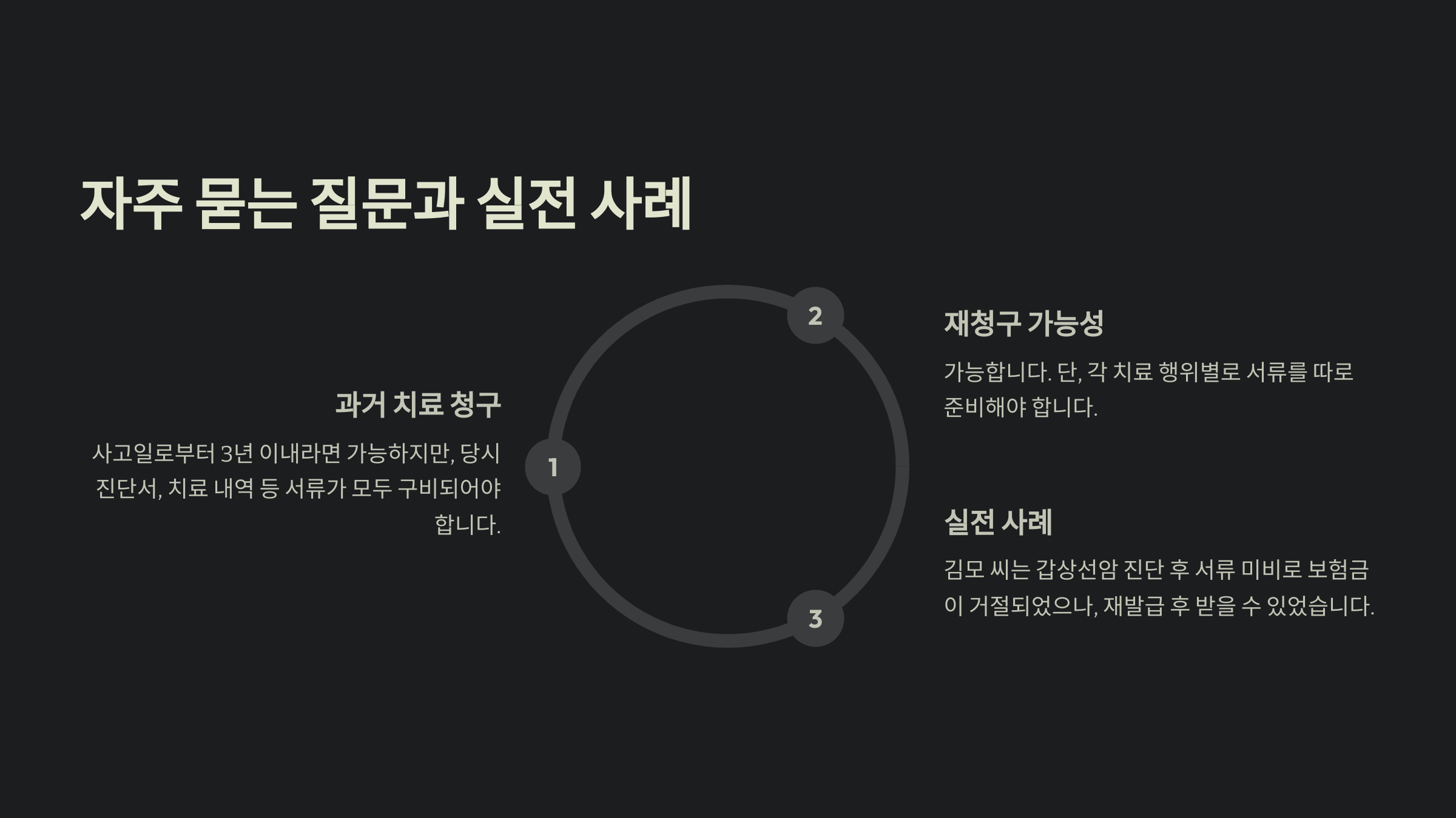- 가입 당시 약관 이해 부족: 어떤 경우에 보장이 되는지 명확히 알지 못해 청구 자체를 포기하는 경우도 많습니다.
