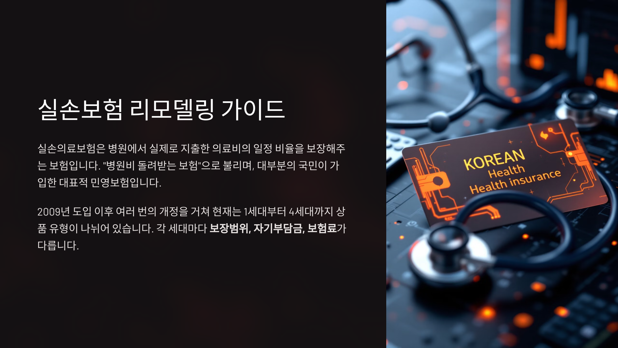 이러한 변화는 단순히 보험상품의 변화가 아니라, 보험을 활용하는 우리의 방식 자체에 영향을 주는 중요한 요소입니다. 지금 내가 어떤 실손보험에 가입해 있는지, 어떤 보장을 받고 있는지 제대로 이해하는 것이 리모델링의 출발점입니다.