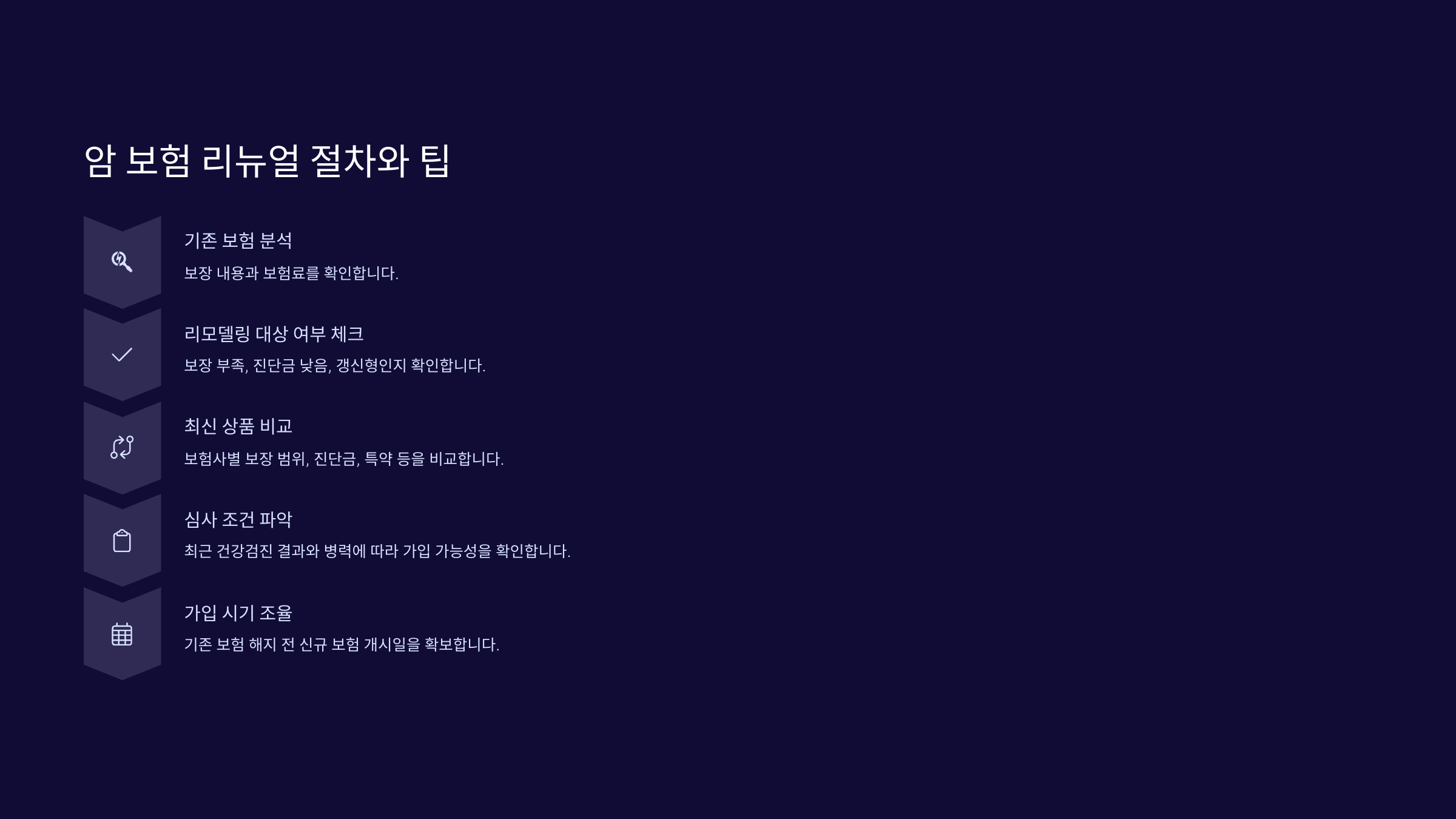 암 보험을 리뉴얼하려면 다음 절차를 따르는 것이 좋습니다: