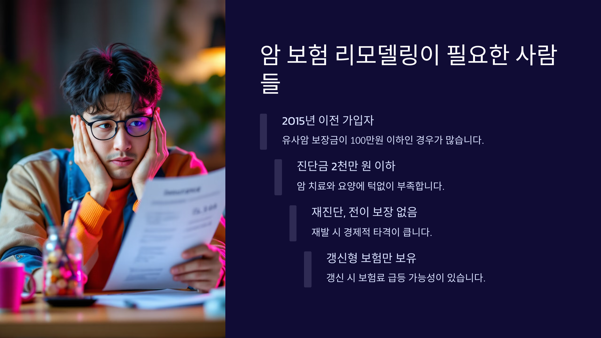 다음에 해당하는 경우, 암 보험 리모델링을 강력히 권장합니다:
