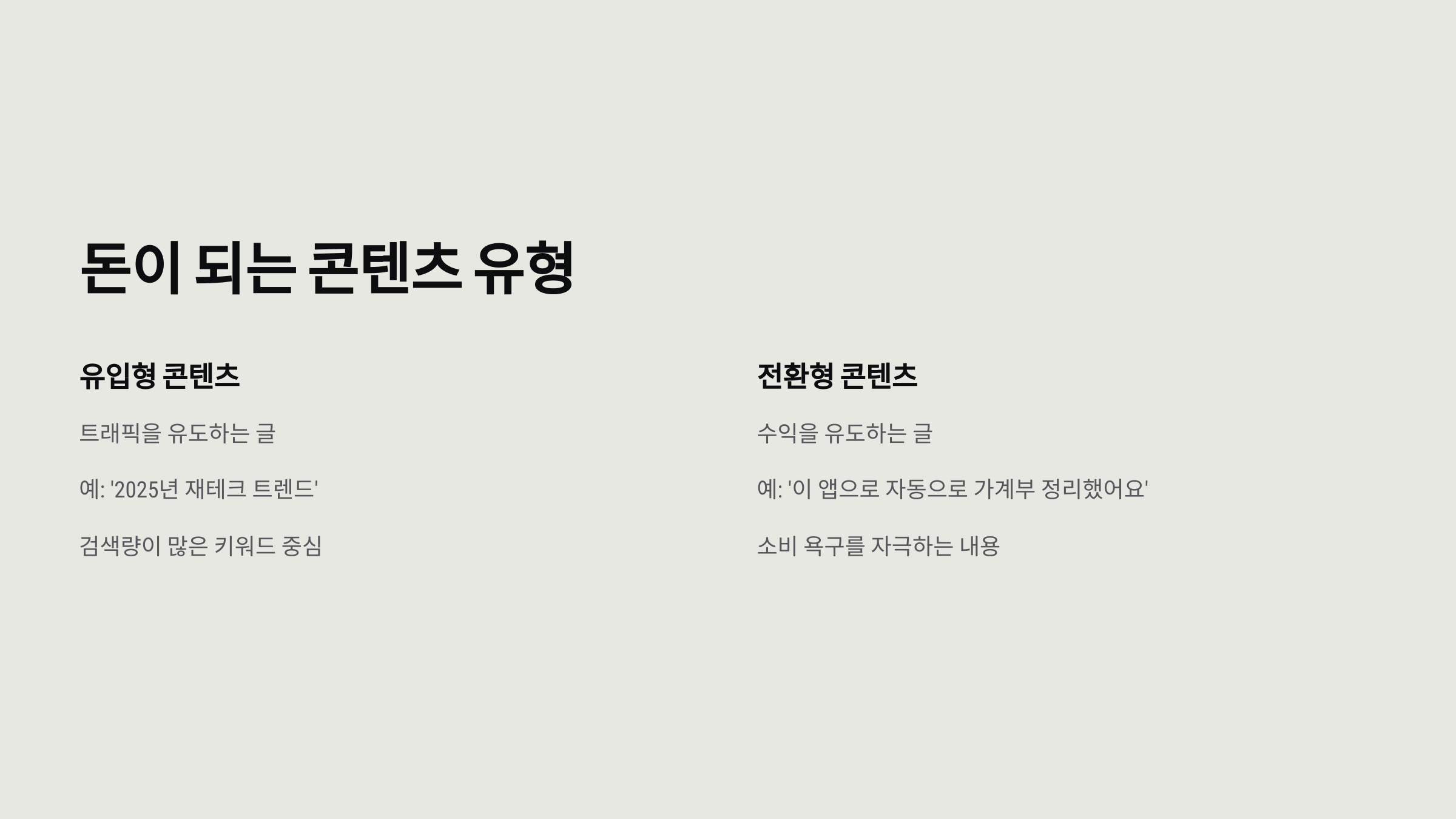 - 전환형 콘텐츠: 수익을 유도하는 글