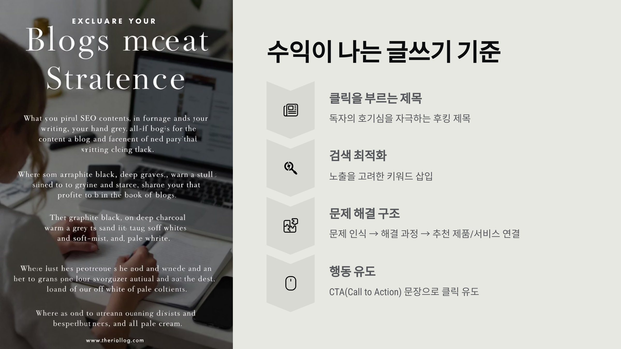 수익형 블로그 글은 '검색 최적화'와 '행동 유도'를 기본으로 합니다.