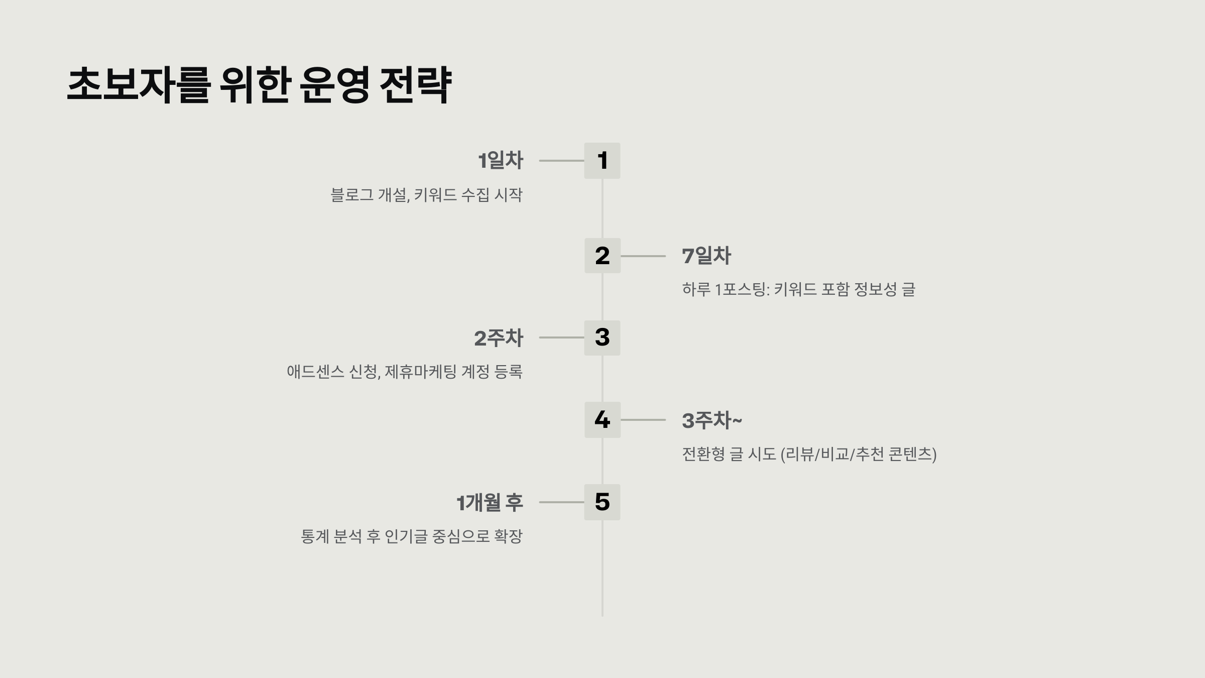 | 3주차~ | 전환형 글 시도 (리뷰/비교/추천 콘텐츠) |