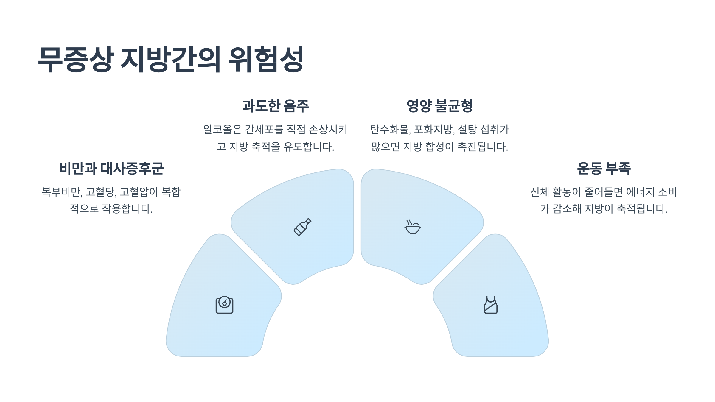 - 운동 부족 신체 활동이 줄어들면 에너지 소비가 감소해 지방이 간에 축적되기 쉽습니다.