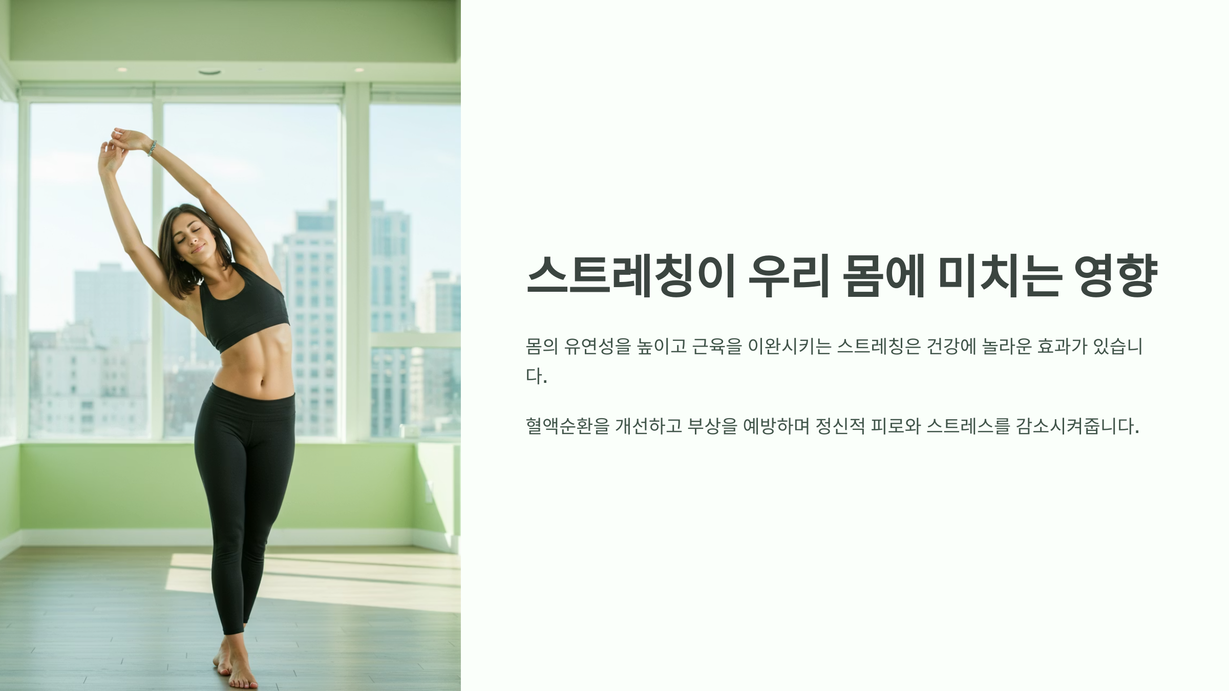 올바른 스트레칭 방법을 숙지하고, 몸의 신호를 잘 살피는 것이 무엇보다 중요합니다. 부드럽게, 꾸준히 스트레칭하는 습관을 통해 몸과 마음 모두 건강해지길 바랍니다.