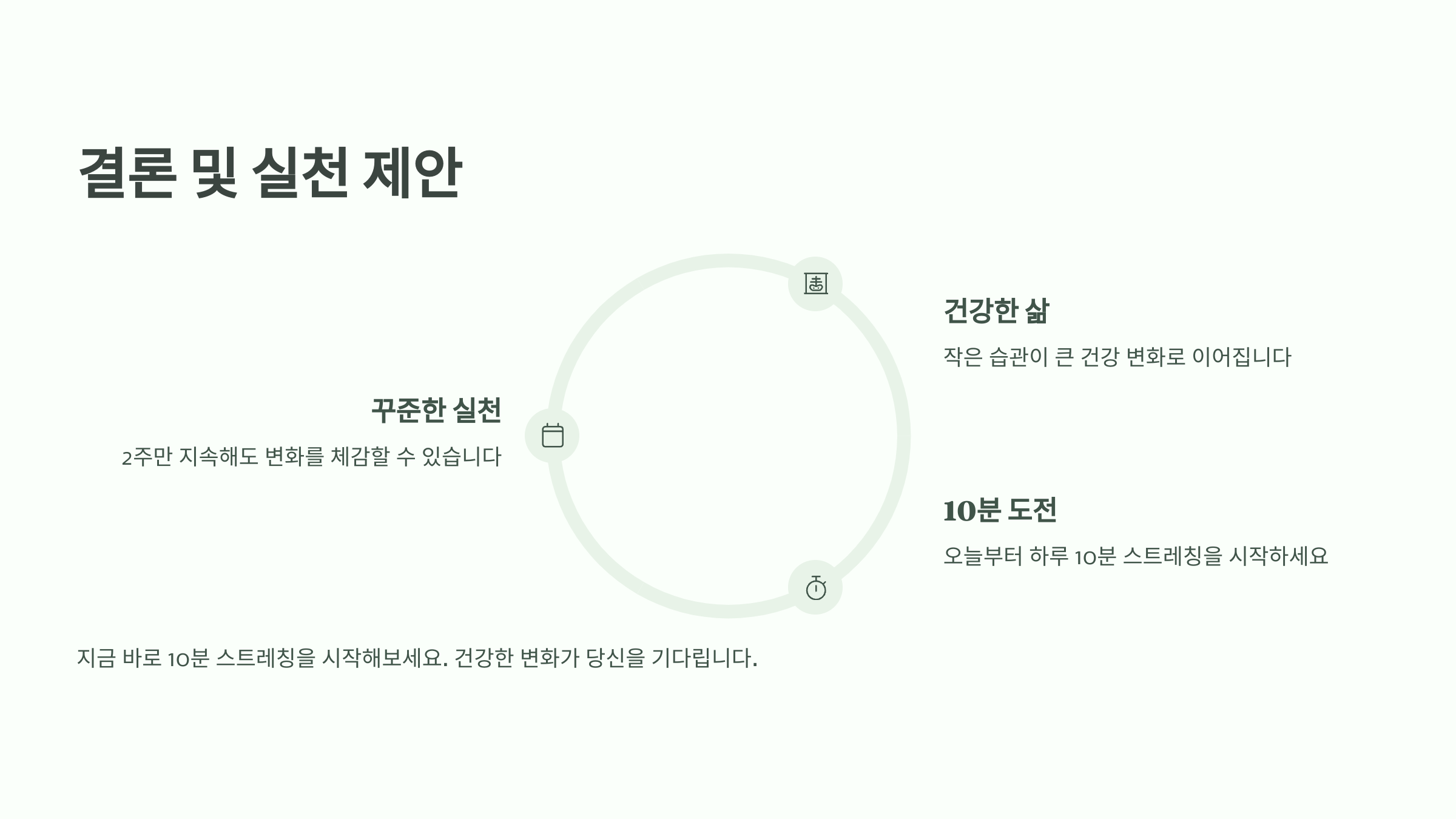 하루 10분 스트레칭을 꾸준히 실천하면 다양한 긍정적인 변화를 경험할 수 있습니다.