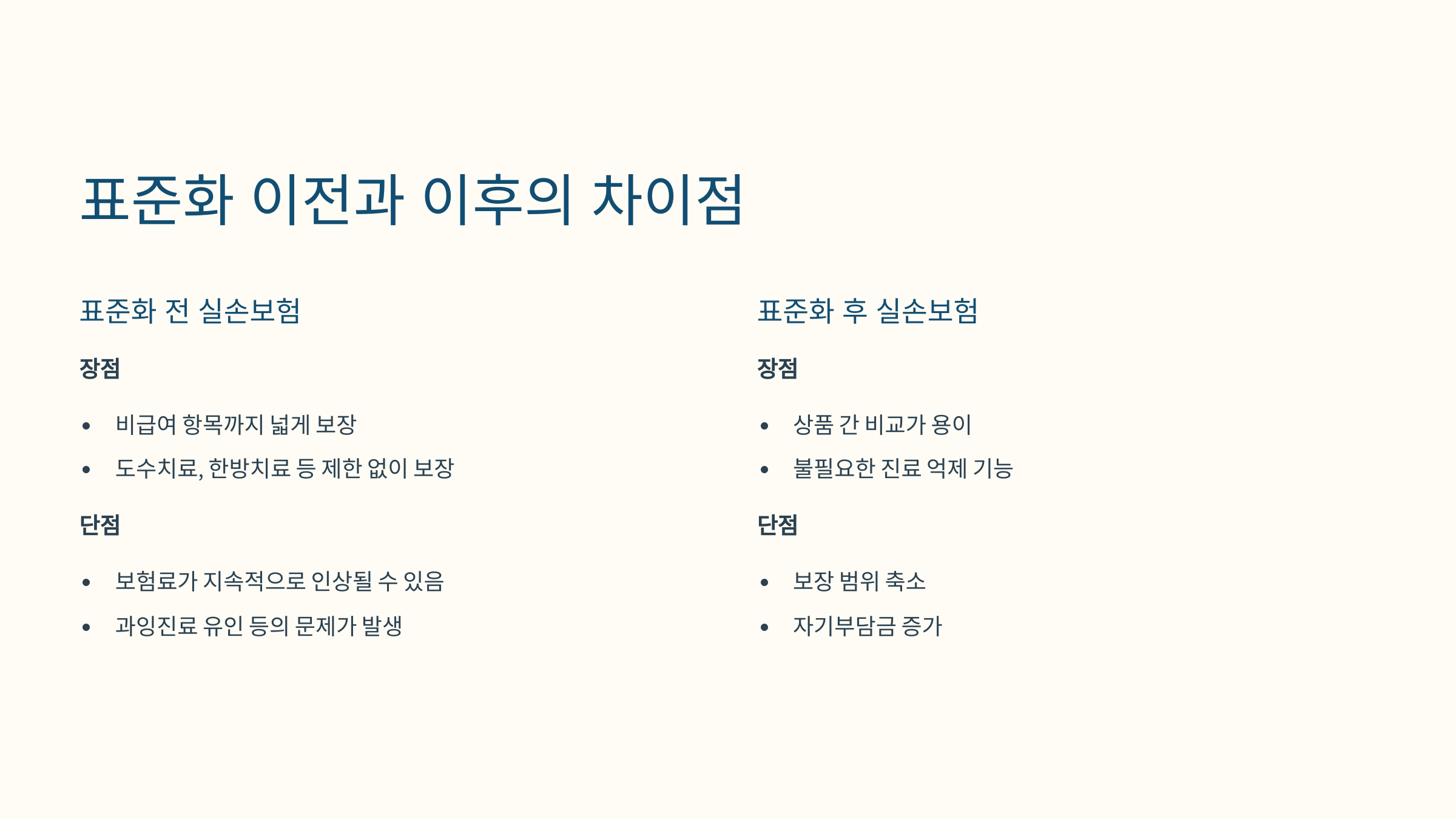 - 비표준화 상품으로 보험사마다 보장 내용이 달랐습니다.