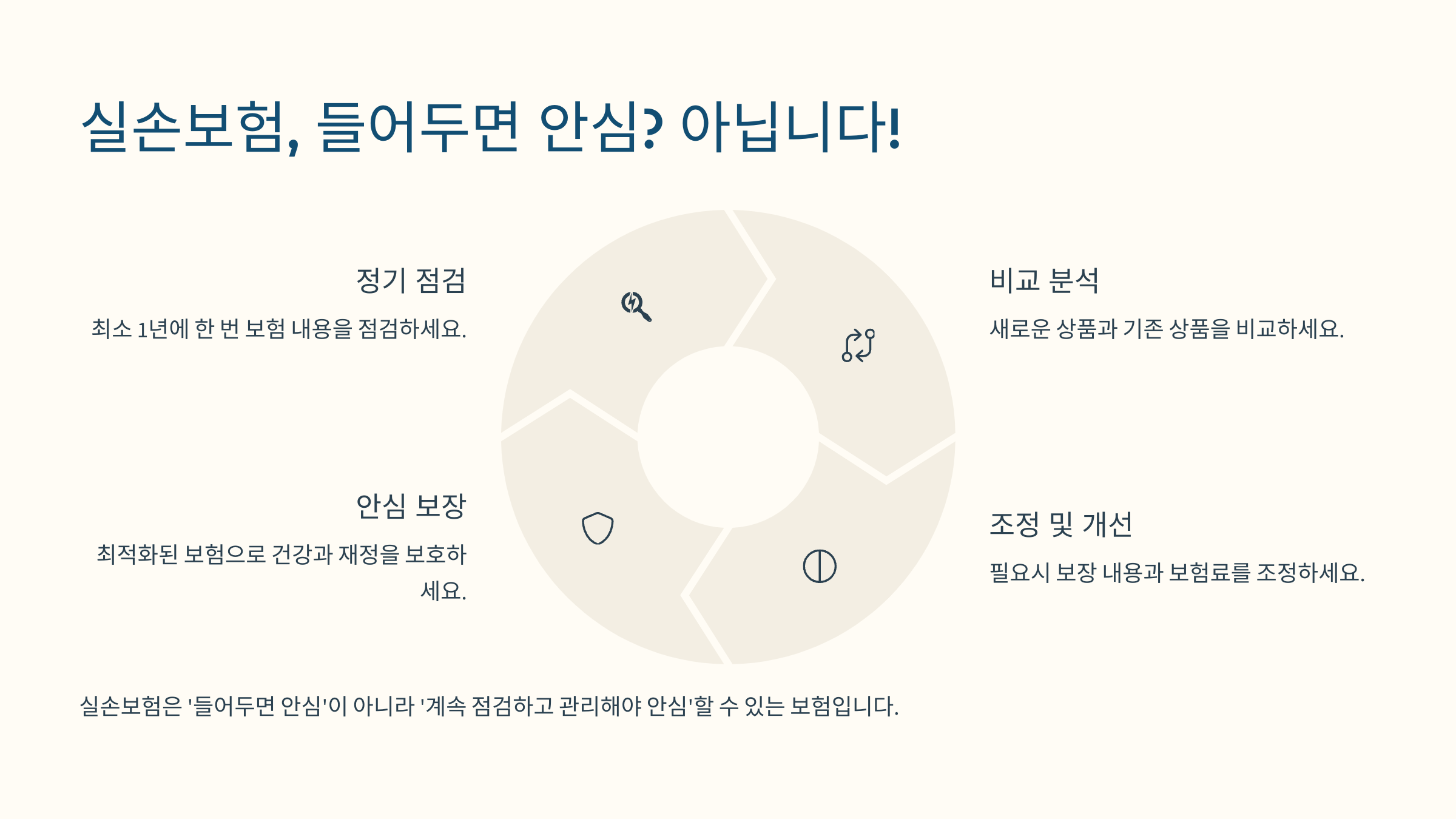 결론적으로, 실손보험은 '들어두면 안심'이 아니라 '계속 점검하고 관리해야 안심'할 수 있는 보험입니다.