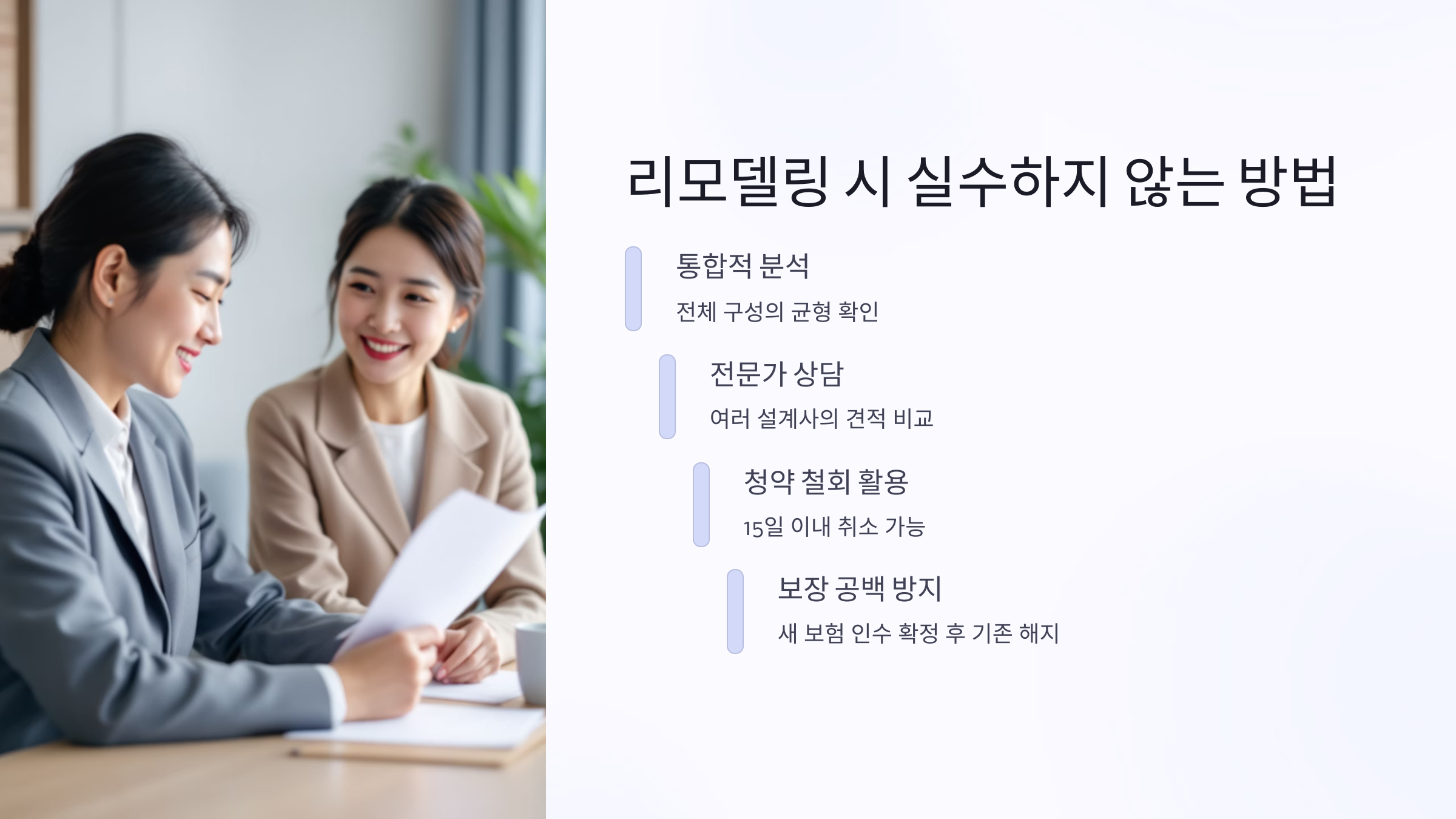 보험은 준비가 빠를수록 유리합니다. 지금 바로 리모델링을 시작해 보세요. 작은 점검이 큰 차이를 만듭니다.